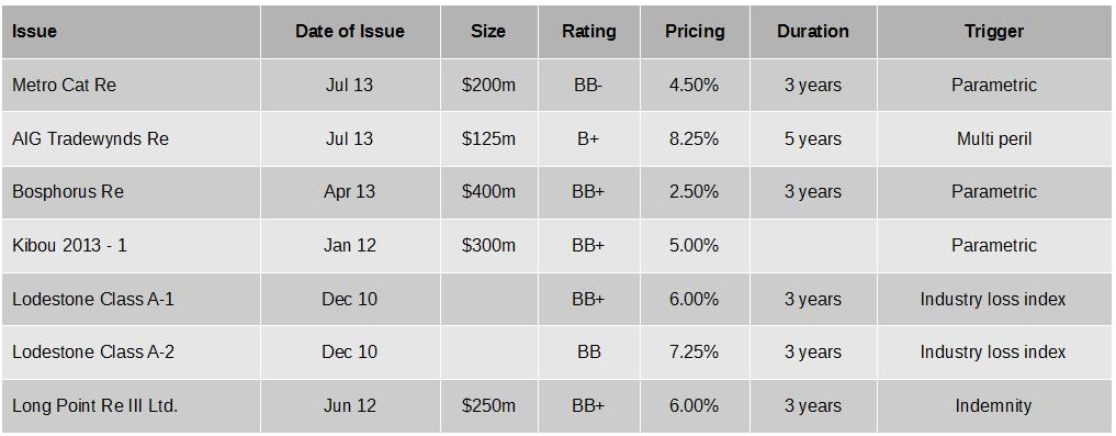 Examples of catastrophe bonds issued